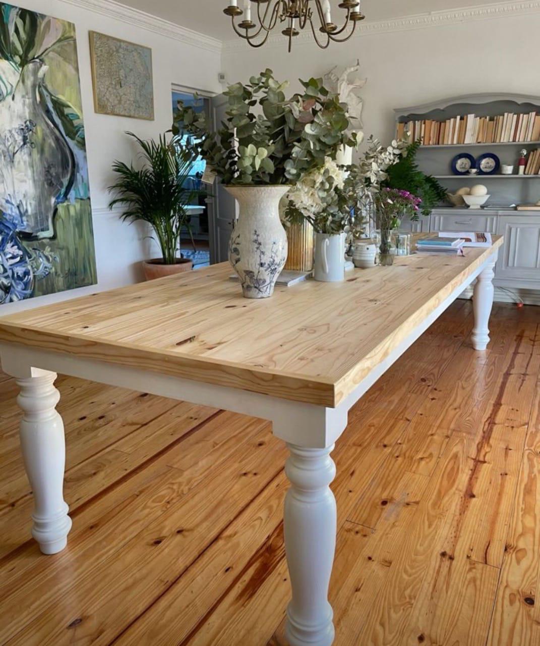 Solid Pine Farmhouse Dining Table 3m – 10 to 12 Seater Turned Leg Wooden Table